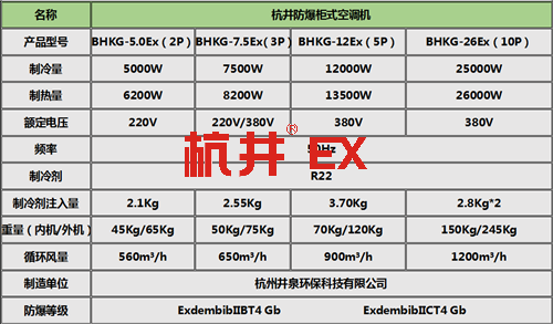 我司除了浙江防爆空调/3p防爆空调/壁挂式防爆空调BHKT-7.5,还可定做10匹到100匹,防爆空调,格力防爆空调,美的防爆空调,十匹化工防爆空调、三匹化工仓库防爆空调、一匹硫化氢仓库防爆空调、BHKT7.5Ex三匹乙烷仓库防爆空调、一点五匹危险品库防爆空调、BHKT5.0Ex二匹石化防爆空调、BKFR系列危险仓库防爆空调、BHKG12Ex五匹库房防爆空调、1p电站防爆空调、2p冶金防爆空调...
